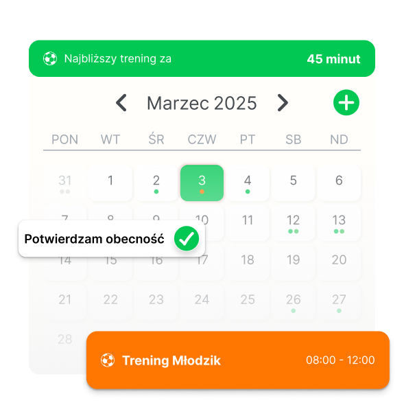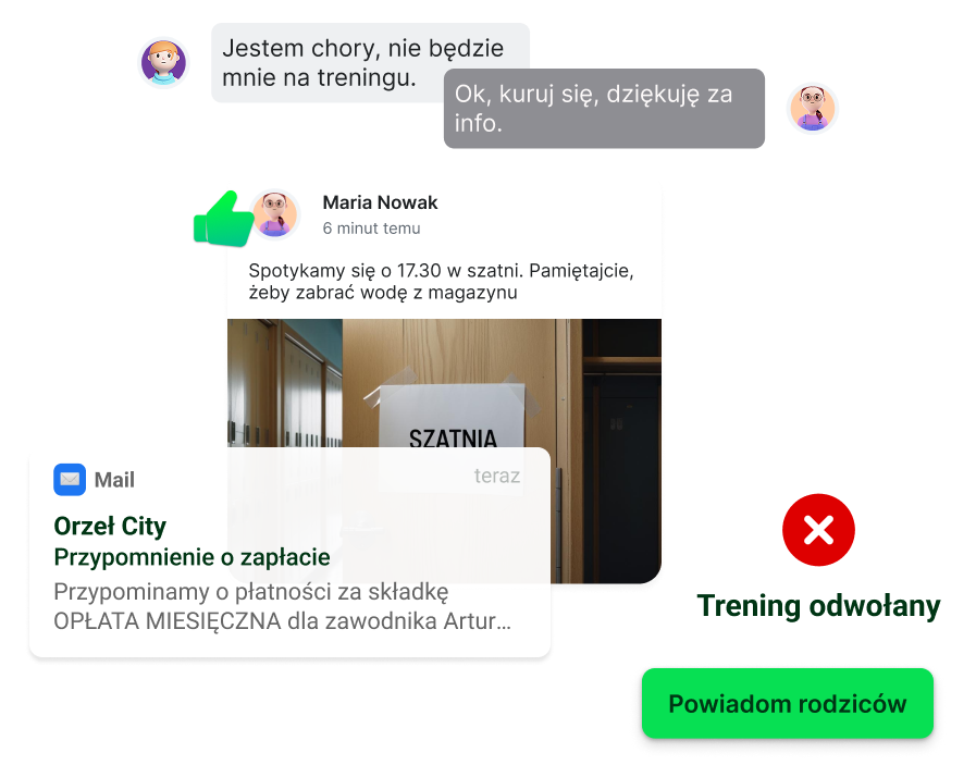 Szybkie i skuteczne komunikowanie się z zawodnikami i rodzicami - wszystkie ważne informacje docierają na czas.